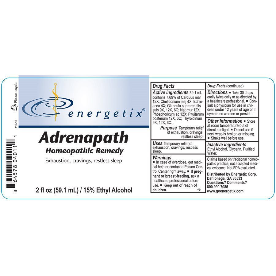 Adrenapath is a homeopathic combination formula for symptoms of adrenal depletion and weakness. This formula contains homeopathic preparations of healthy organs and glands which assist with the symptoms of overtaxed adrenals.