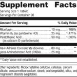 - Pantothenic Acid (as D-calcium pantothenate) — 50 mg — 500%