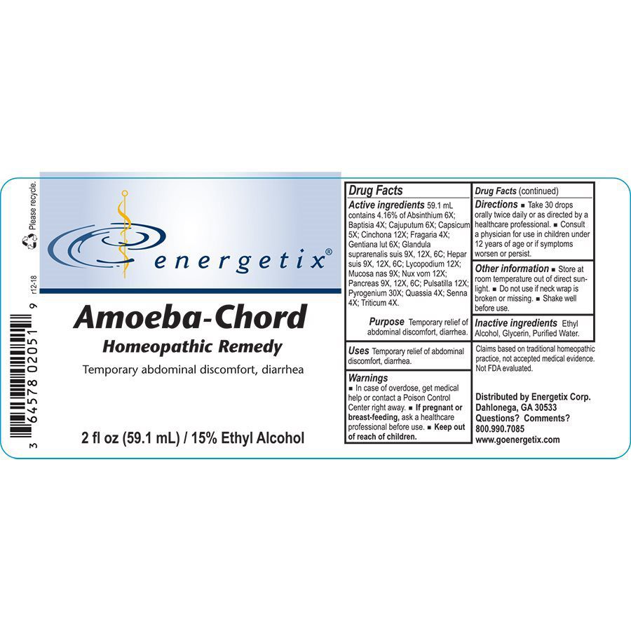 Amoeba-Chord is a homeopathic combination formula for symptoms related to waterborne parasites.