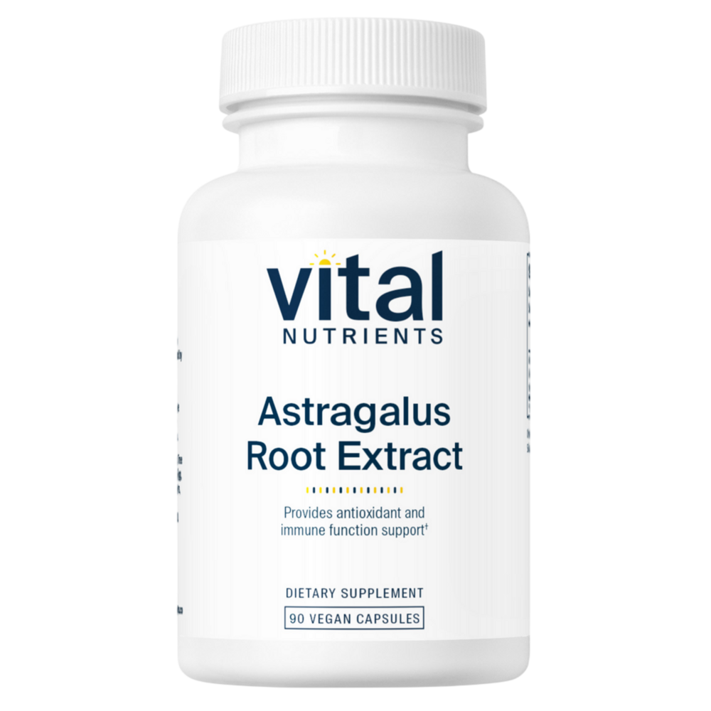 • Astragalus Root Extract supports a healthy immune system* • High in trace minerals and micronutrients* Astragalus Root Extract is a Chinese herb used to support the immune system, promoting normal levels of antibodies, macrophages and immune messenger molecules.* In Traditional Chinese Medicine, Astragalus is used to tonify the spleen, the qi (vital energy), and the blood.* Astragalus Extract has antioxidant effects and helps inhibits free radical production and lipid peroxidation.* It is also very high in trace minerals and micronutrients.* Some preliminary research suggests Astragalus Extract may help support blood sugar levels already in the normal range.* Vital Nutrients Astragalus Extract capsules are vegetarian.