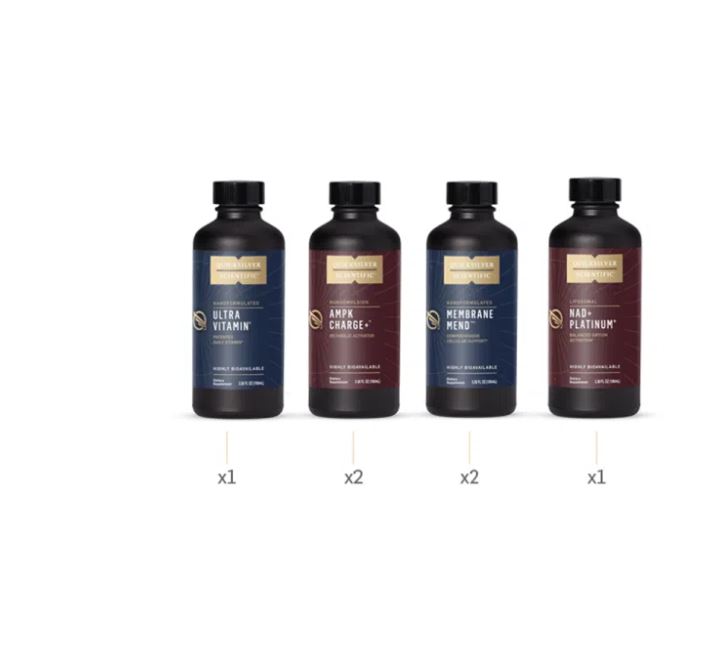 The Bio-Age Elevate protocol enhances mitochondria and boosts energy levels by optimizing metabolism through AMPK activation and NAD+ generation, while nourishing your cells with essential nutrients.