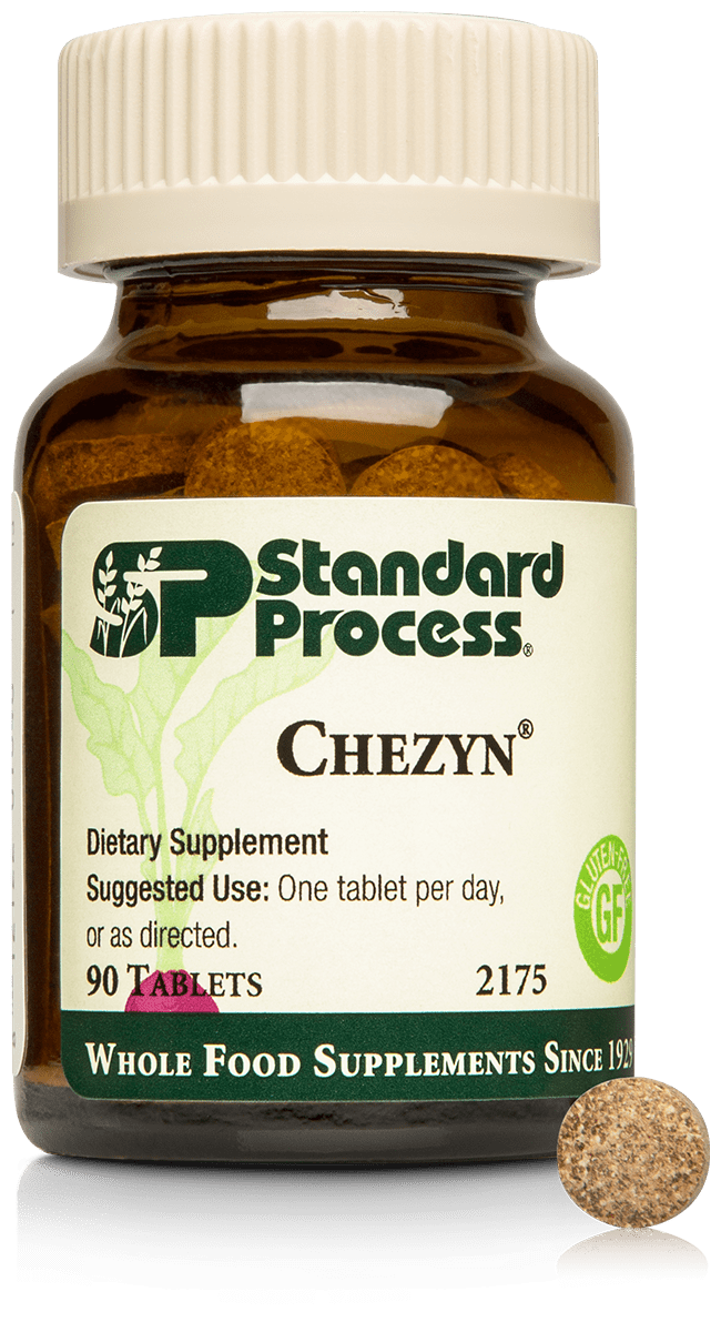 Chezyn is a balanced trace mineral complex of zinc, copper, and iron.