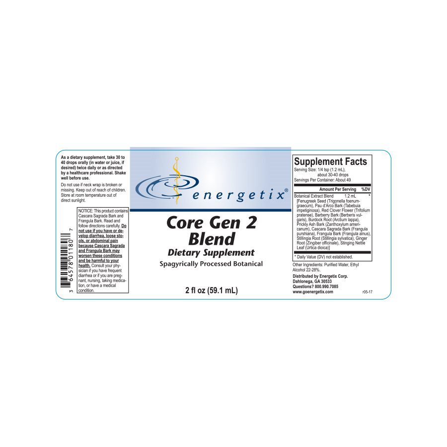 Core Gen 2 Blend is a botanical blend designed to support the normal function of both the circulatory and filtration systems.