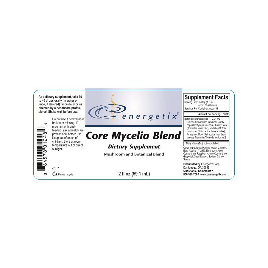 Core Mycelia Blend is a blend of traditional mushrooms such as reishi, cordyceps, turkey tails, maitake, and shiitake mushrooms that assists with maintaining normal immune response. Elderberry and raspberry juices were added to Core Mycelia Blend to create a more pleasant-tasting liquid botanical blend.