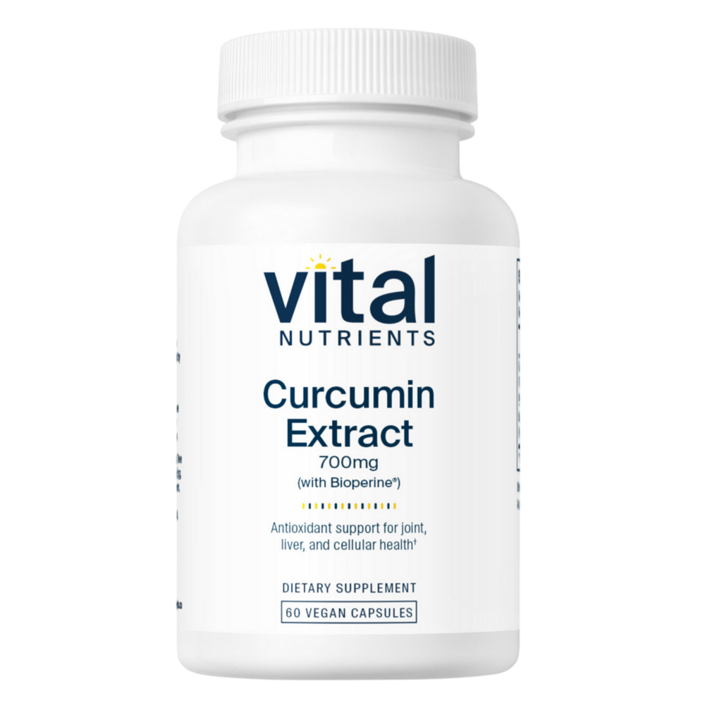 • Bioavailability of Curcumin significantly increased with inclusion of Piperine* • Promotes reduction of substance P* • Maintains healthy levels of platelet aggregation* Curcumin Extract is a potent antioxidant that depletes levels of substance P and promotes comfort of the joints and cartilage. Curcumin also helps maintain platelet aggregation levels that are already within normal range, and supports arachadonic acid metabolism to help maintain a healthy inflammatory balance.* The addition of Bioperine® piperine from Black Pepper Extract increases the bioavailability of the Curcumin by 2,000%.* Vital Nutrients exclusively uses Curcumin Extract specially produced without 1,2-dichloroethane, to ensure the products are free of these toxic solvent residues.