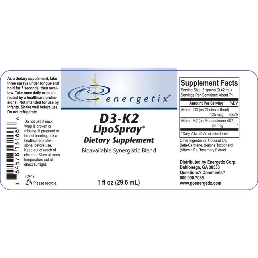 D3-K2 LipoSpray is a synergistic blend of the prohormone vitamin D3 and the fat-soluble vitamin K2, which work together to regulate calcium uptake and routing as well as help maintain the integrity of the skeletal, dental, and cardiovascular systems. Coconut oil allows the active ingredients (the fat-soluble vitamins D3 and K2) to be more easily absorbed due to the long-chain fatty acids. Pleasant tasting and easy to use.