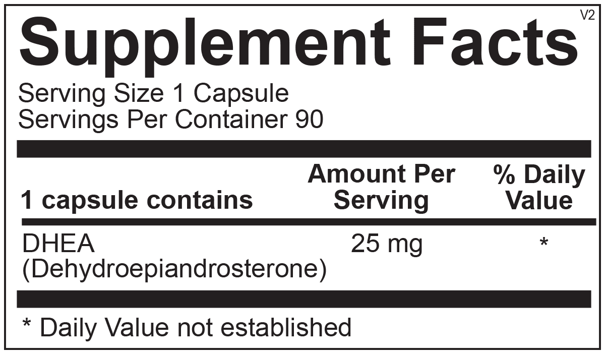 Each capsule provides 25 mg of DHEA derived from wild yam, allowing for incremental oral supplementation and flexibility with various hormone-balancing and stress-fighting protocols.