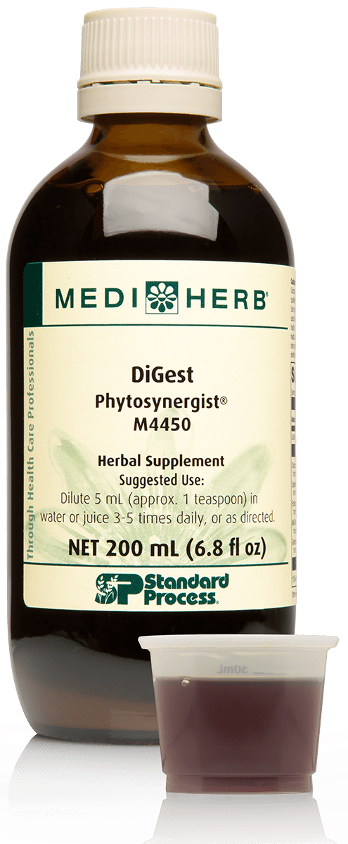 The combination of herbs in Digest Phytosynergist contain many compounds including bitter principles of the secoiridoid type (especially gentiopicrin and amarogentin), caffeic acid derivatives (especially echinacoside and cynarin), alkylamides, an essential oil (containing a-bisabolol), flavonoids, flavanolignans (collectively known as silymarin), sesquiterpene lactones, phenolic acids and sterols. Together these herbs and the compounds within them help: