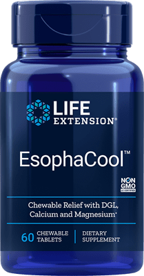 Our EsophaCool™ formula combines a special licorice root extract and calcium carbonate to provide on-the-go support for the delicate lining of your esophagus and healthy digestive function. EsophaCool™ also delivers magnesium, which is depleted by traditional digestive support regimens.