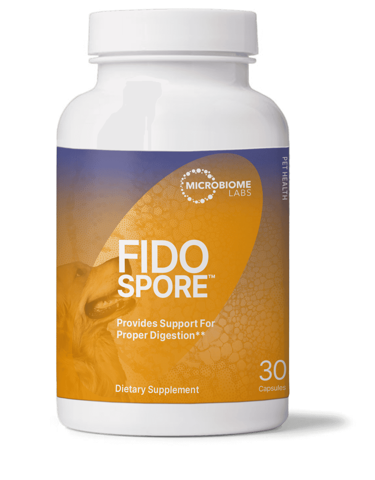 FidoSpore by Microbiome Labs is a clinically studied probiotic designed to support digestive health, reduce leaky gut, and promote immune balance in dogs.