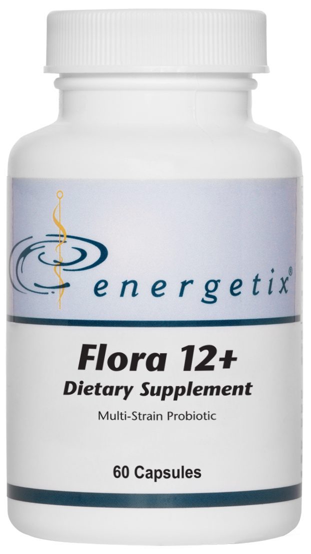 Flora 12+, a multi-strain probiotic, is a combination of twelve beneficial bacteria plus saccharomyces boulardii and the prebiotic fructooligosaccharides (FOS). This synergistic probiotic blend helps support normal digestion, a healthy intestinal barrier, and normal immune response through the repopulation of the GI tract with helpful bacterial strains.