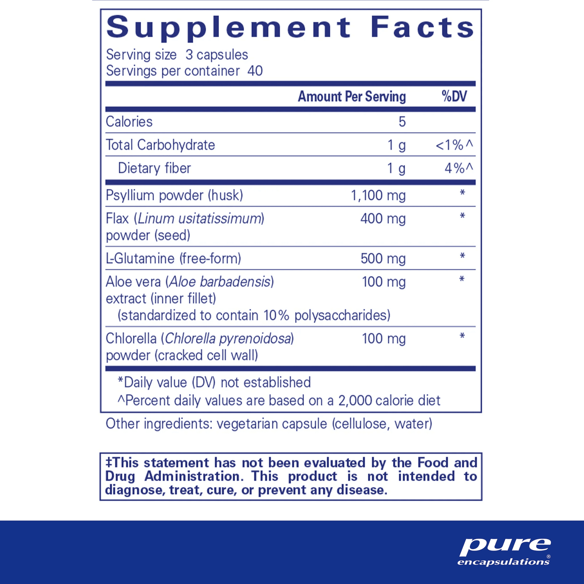 G.I. Fortify (capsules) promotes a healthy G.I. environment, microflora balance and colon cell health. It maintains bowel regularity and supports healthy bowel movement frequency with psyllium and flax. With glutamine, an important energy source for the G.I. tract in times of stress or increased metabolic demand, it promotes healthy intestinal cells and enhances the protective mucosal lining. Fiber and chlorella enhance healthy G.I. detoxification.