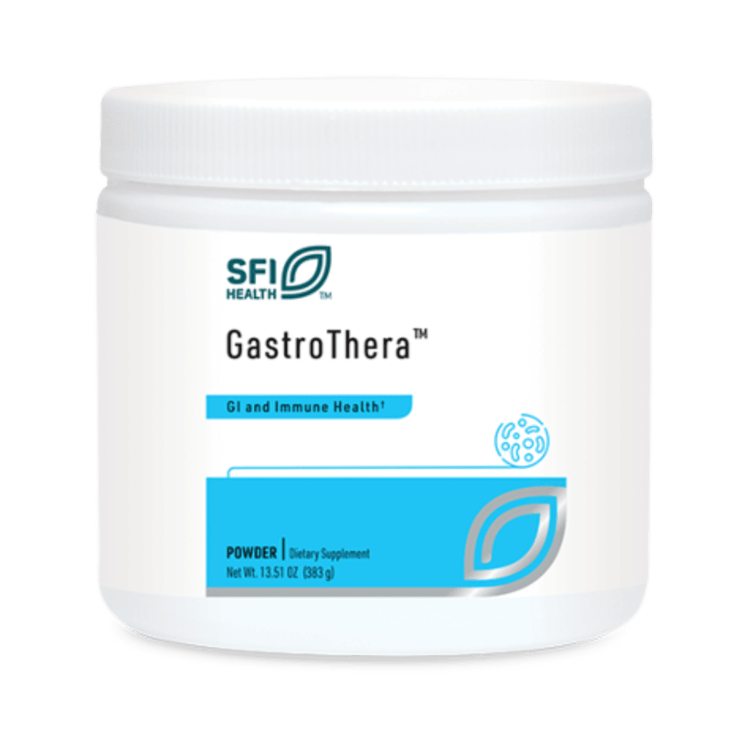 GastroThera can be taken regularly or periodically for nutritive support of GI function and is often used with probiotic supplementation. The powder is neutral in taste and readily soluble in water.