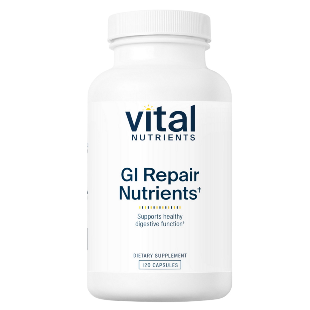 • Promotes integrity of intestinal mucosal lining* • Maintains healthy intestinal permeability* • Supports growth and health of gastrointestinal lining* GI Repair Nutrients combines amino acids with botanicals and a stable probiotic to support gastrointestinal health.* This comprehensive blend promotes the growth and health of the gastrointestinal lining.* The formula helps support and protect the intestinal mucosal cells, which assists in maintaining healthy intestinal permeability.* It is recommended to combine this supplement with Acidophilus/Bifidobacter/FOS.* If necessary, combine with higher doses of Glutamine (Glutamine Powder or Glutamine 850mg).*