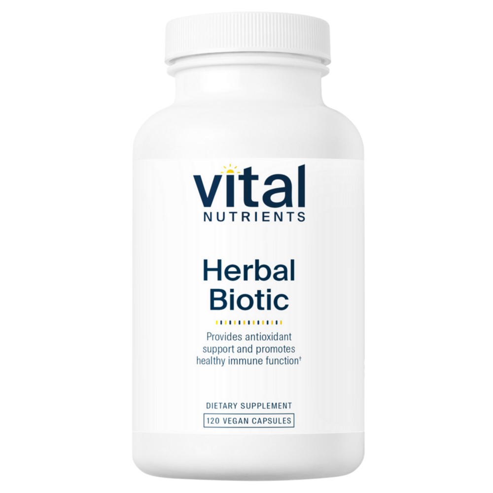 • Promotes healthy immune function* • Provides antioxidant support* • Aids in healthy antibody production* Herbal Biotic is a powerful combination of immune supporting herbs, bioflavonoids and vitamins.* The vitamins and minerals in the formula (Vitamin A, Vitamin C, and Zinc) are well-known for their roles in normal immune function.* The herbs and bioflavonoids provide high levels of antioxidant activity and support the body’s natural defenses.* This synergistic formula promotes upper respiratory and sinus health.*