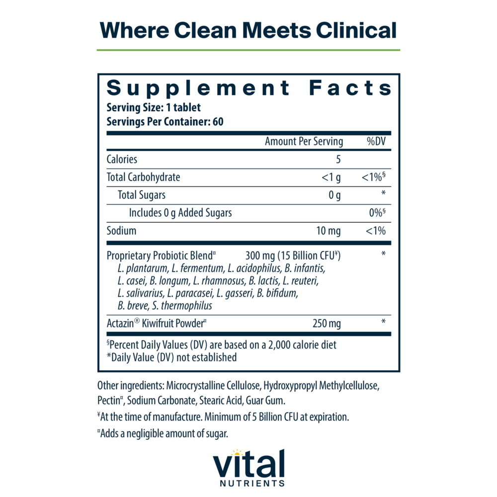 Packaging and label may vary. Advanced support for regularity, gas, and bloating* Using clinically backed ingredients and proprietary BIO-tract® delivery technology, Hyperbiotics Pro-15® Advanced Probiotic is uniquely designed to provide advanced and synergistic support for women’s and men’s gut, digestive, and immune health. By combining 15 targeted probiotic strains with clinically studied Actazin, this formula is designed to improve regularity, comfort, and frequency of bowel movements and support gas, bloating, and digestive discomfort.*Built-in prebiotic: Comprised entirely of the New Zealand kiwifruit, the kiwifruit powder included in Pro-15 Advanced Probiotic is a whole food super-fruit ingredient that helps feed the probiotics for increased potency and aids in digestion to reduce frequent gas and bloating.*BIO-tract delivery technology for optimal survivability: Our proprietary time-release delivery technology offers advanced protection for the probiotic organisms to ensure they reach deep into your intestinal tract, where they are most effective. This formula offers up to 15X more probiotic survivability than standard vegetarian capsules,‡ allowing us to offer superior results at a lower CFU.*Diverse strains for a comprehensive gut microbiome: Our formula includes 15 research-backed probiotics, including 9 Lactobacillus strains, 5 Bifidobacterium strains, and 1 Streptococcus strain, promoting a diverse gut microbiome with an ideal balance of Bifidobacterium and Lactobacillus strains, stabilizing gut function and reducing the incidence of prolonged diarrhea by up to 67%.1Easy one-per-day regimen: This shelf-stable probiotic does not require refrigeration. One tablet per day provides results you can feel.Clean, vegan formula: Free from gluten, dairy, peanut, tree nut, fish, shellfish, soy, sesame, egg, and active yeast. Non-GMO. Made without artificial fillers, coatings, binders, or colors.Probiotic strain type: Lactobacillus fermentum, Lactobacillus plantarum, Lactobacillus acidophilus, Bifidobacterium bifidum, Bifidobacterium breve, Bifidobacterium infantis, Bifidobacterium lactis, Bifidobacterium longum, Lactobacillus casei, Lactobacillus gasseri, Lactobacillus paracasei, Lactobacillus reuteri, Lactobacillus rhamnosus, Lactobacillus salivarius, Streptococcus thermophilus1. Ansell J et al. Nutrition Research. 2015;35(5):401-408.Actazin® is a registered trademark of Anagenix LTD Probi BIO-tract® is a registered trademark of Probi® ‡BIO-tract® vs. instant release formulations under in vitro test conditions