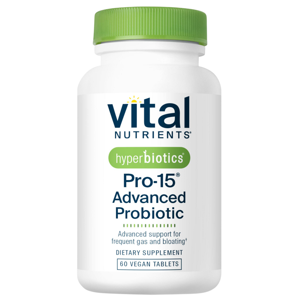 Support for everyday digestive health* Backed by clinical research and leveraging proprietary BIO-tract® delivery technology, Hyperbiotics Pro-15® Pre + Probiotic is a perfect foundational probiotic for men’s and women’s health. Uniquely formulated with 15 well-researched probiotic strains and prebiotic fructooligosaccharide, this clinically studied formula replenishes beneficial bacteria throughout the gastrointestinal tract for a well-balanced gut microbiome and has been clinically shown to ease occasional symptoms of inflammatory bowel disease, including diarrhea, digestive discomfort, and absorption of key vitamins and minerals.* BIO-tract delivery technology for optimal survivability: Our proprietary time-release delivery technology offers advanced protection for the probiotic organisms to ensure they reach deep into your intestinal tract, where they are most effective. This formula offers up to 15X more probiotic survivability than standard vegetarian capsules,‡ allowing us to offer superior results at a lower CFU.* Diverse strains for a comprehensive gut microbiome: Our formula includes 15 research-backed probiotics, including 9 Lactobacillus strains, 5 Bifidobacterium strains, and 1 Streptococcus strain, promoting a diverse gut microbiome. Easy one-per-day regimen: This shelf-stable probiotic does not require refrigeration. One small, easy-to-swallow pearl tablet per day. Clean, vegan formula: Free from gluten, dairy, peanut, tree nut, fish, shellfish, soy, sesame, egg, and active yeast. Non-GMO. Made without artificial fillers, coatings, binders, or colors. Probiotic strain type: Lactobacillus fermentum, Lactobacillus plantarum, Lactobacillus acidophilus, Bifidobacterium bifidum, Bifidobacterium breve, Bifidobacterium infantis, Bifidobacterium lactis, Bifidobacterium longum, Lactobacillus casei, Lactobacillus gasseri, Lactobacillus paracasei, Lactobacillus reuteri, Lactobacillus rhamnosus, Lactobacillus salivarius, Streptococcus thermophilus. Packaging and label may vary. Probi BIO-tract® is a registered trademark of Probi®‡BIO-tract® vs. instant release formulations under in vitro test conditions”