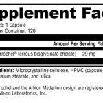 Iron Glycinate is a gentle iron supplement that’s easy to absorb and mild on the stomach for daily use. Discover Iron Glycinate, a premium iron supplement designed for superior absorption and gentleness on your stomach, which is perfect for daily use. Iron is a vital mineral essential for the production of hemoglobin, the protein in red blood cells responsible for oxygen distribution throughout your body. This exceptional iron glycinate formulation features a patented, high-bioavailability form of iron sourced exclusively from Albion® Laboratories, ensuring optimal absorption. Iron Glycinate is your ideal solution for effortlessly enhancing your iron levels while eliminating concerns about gastrointestinal discomfort. Take charge of your health and vitality with Iron Glycinate.*
