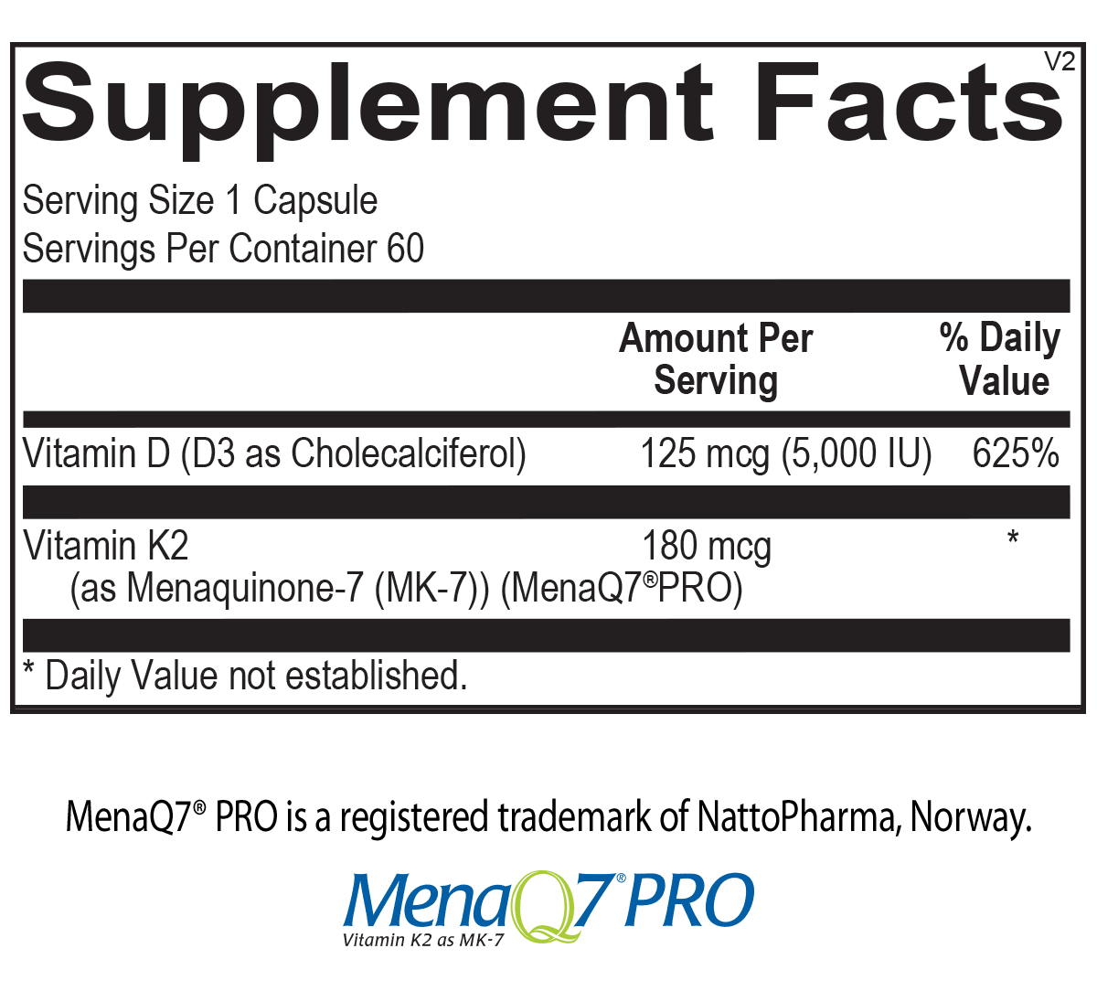 K-FORCE provides 180 mcg of MenaQ7 PRO, the most widely studied form of vitamin K2 as MK-7, along with 5,000 IU of vitamin D3 for optimal support of bone and cardiovascular health.