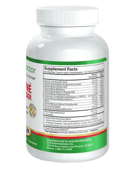 - Taurine, Soy Lecithin (23% Phosphatidylcholine), Broccoli (flower), N-Acetyl L-Cysteine, L-Glutamine, Glycine, Inositol, Green Tea Leaf Extract (Camellia sinensis), Natural Carotenoids (from alga Dunaliella salina)