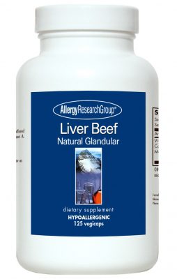 Beef liver glandular (natural glandular), cellulose (vegetarian capsule), rice flour, magnesium stearate (vegetable source).