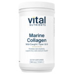 • Types I & III collagen promote healthy tissue growth of hair, skin and nails* • Supports joint health and bone strength* • Sustainably-sourced from wild, deep-sea fish Marine Collagen provides 9.4 grams of protein per serving, and 8 out of 9 essential amino acids. Fish collagen differs from bovine or porcine sourced-collagen because it contains higher amounts of the amino acids, Glycine and Proline, and is absorbed into the body faster.* Fish collagen peptides are comprised of two types of collagen, types I & III. Type I and Type III collagen benefits include promoting healthy hair and nail growth, supporting skin elasticity and hydration, as well as supporting joint health and function, and bone strength.* Collagen is also an important component of the gut’s connective tissue and may help support the protective lining of the digestive tract.* Our hydrolyzed collagen powder, contains no odor or taste, is easy to digest, and readily dissolves in liquids or soft foods. Marine Collagen is non-GMO, hormone and antibiotic-free, and gluten-free; and contains no additives, preservatives or sulfites.