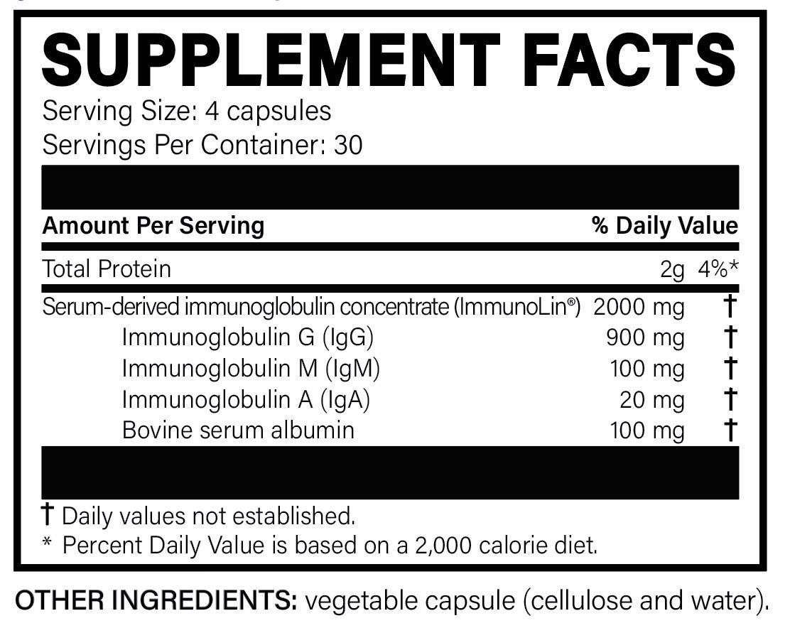Mega IgG2000 is a dairy-free immunoglobulin concentrate that supports healthy digestion, binds environmental toxins, and maintains healthy gut barrier function. Unlike other milk-derived immunoglobulins on the market, Mega IgG2000 is derived from bovine serum, making it lactose-free, casein-free, and beta-lactoglobulin-free.