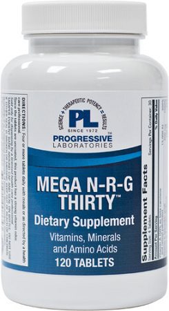 Mega N-R-G Thirty is a comprehensive, general purpose multiple vitamin and mineral supplement that combines balanced potencies of essential nutrients to provide a strong foundation for any nutritional support program or as a maintenance supplement to a healthy diet. Iron and copper are essential minerals; however, many people may be better served by carefully controlling their intake of these two nutrients. For this reason, copper and iron are not included in the Mega N-R-G Thirty formula.