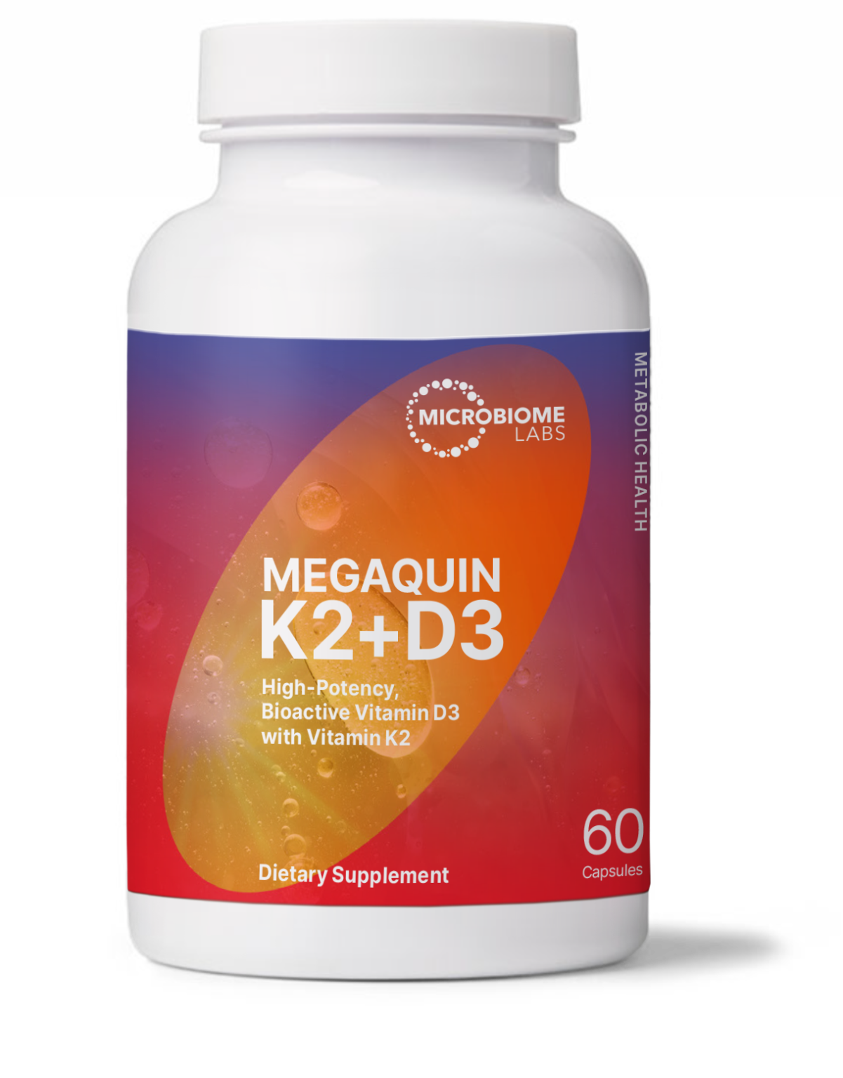 Introducing MegaQuin K2+D3, a high-potency K2/D3 supplement that represents a new approach to supporting bone, heart, nerve, mitochondrial, and immune function. Give your clients far-reaching metabolic support with this synergistic vitamin K and D supplement formulation offering a myriad of health-supportive benefits! Every daily supplement regimen should include the essential vitamins D and K. Microbiome Labs combines highly bioactive and effective forms of natural vitamin K2 (MK-7) and vitamin D3 (cholecalciferol) in MegaQuin K2+D3.