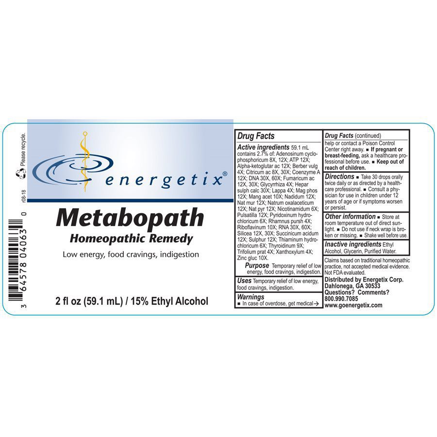 Metabopath is a homeopathic combination formula for symptoms associated with cellular metabolism.