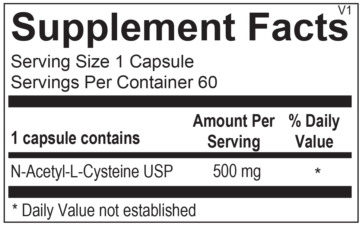 • Each capsule of the N-Acetyl Cysteine formulation includes 500 mg of this versatile amino acid.