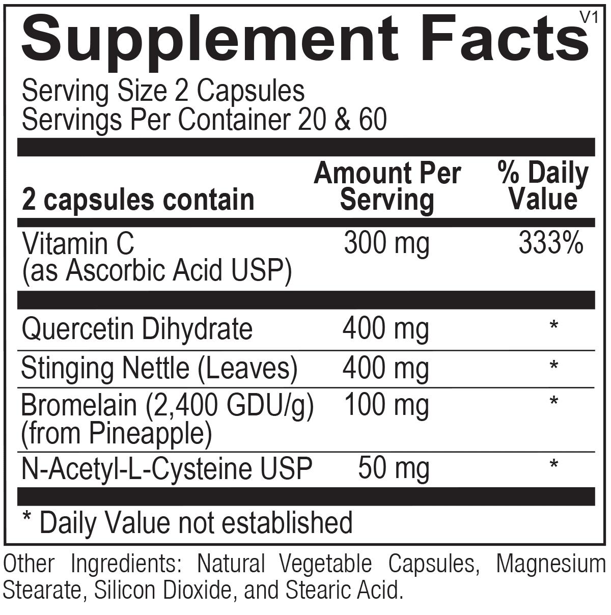 • Natural D-Hist is a targeted blend of flavonoids, antioxidants, proteolytic enzymes and botanicals designed to provide comprehensive support for seasonal challenges caused by common environmental allergens. The formula includes quercetin, bromelain, stinging nettles leaf and N-acetyl cysteine. The powerful combination actively promotes healthy nasal and sinus passages for individuals with elevated histamine and respiratory irritation.