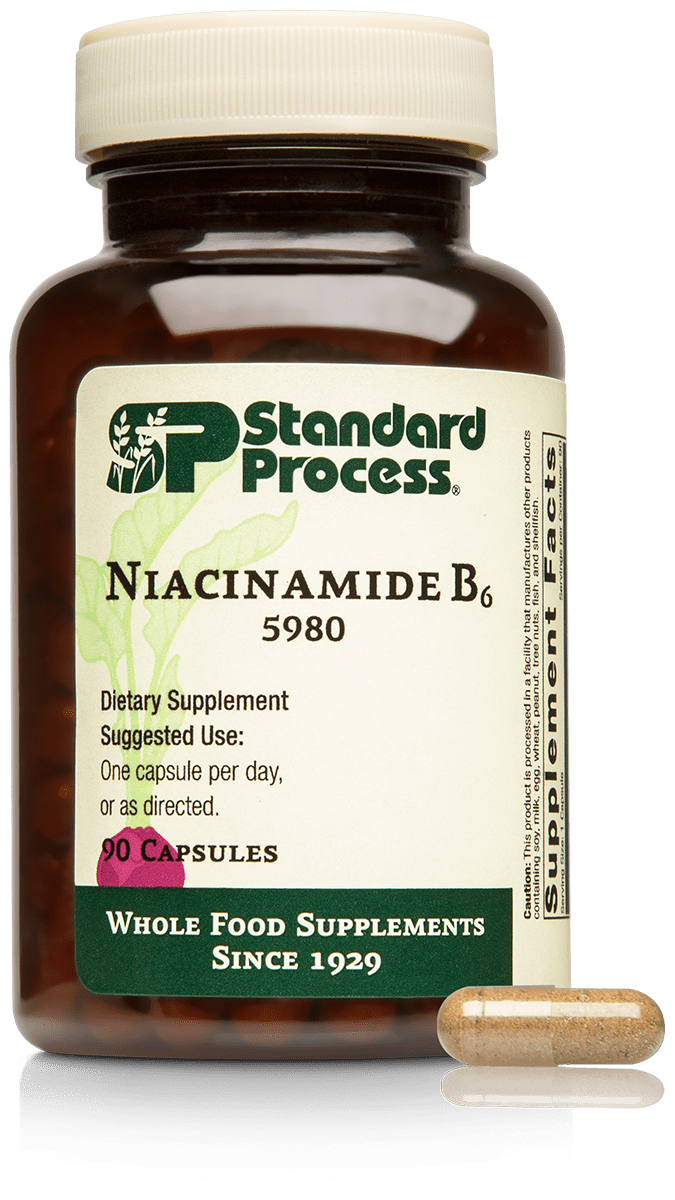 Niacinamide B6 aids in the breakdown of proteins, fats, and carbohydrates.*