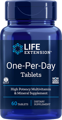 - In response to requests for a scientifically based one-per-day supplement, Life Extension compounded a formula that provides the same essential vitamins and nutrients as Two-Per-Day, but in a single tablet. When compared to conventional one-a-day products, Life Extension One-Per-Day contains up to 50 times more potency of specific nutrients.