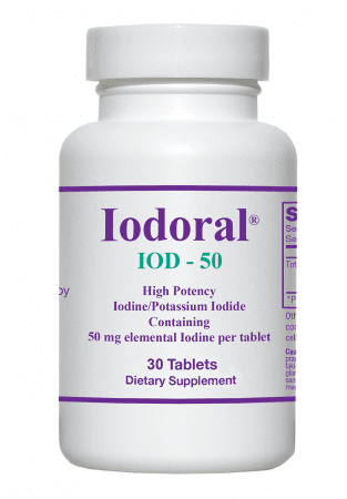 High Potency Iodoral® IOD-50 is an iodine/potassium iodide supplement that supplies 50 mg of elemental iodine.
