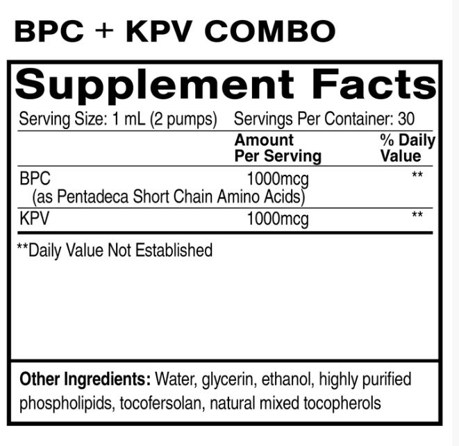 Liposomal BPC + KPV delivers a powerful pairing of regenerative and inflammatory-modulating peptides—BPC, a 15-amino acid compound derived from the protective BPC protein in the human gut, and KPV, a naturally occurring tripeptide known for its potent anti-inflammatory and anti-microbial properties. Formulated with Quicksilver Scientific’s advanced liposomal delivery system, this complex offers enhanced bioavailability and absorption to promote gastrointestinal healing and repair, immune regulation, tissue support, and pathology-based recovery.