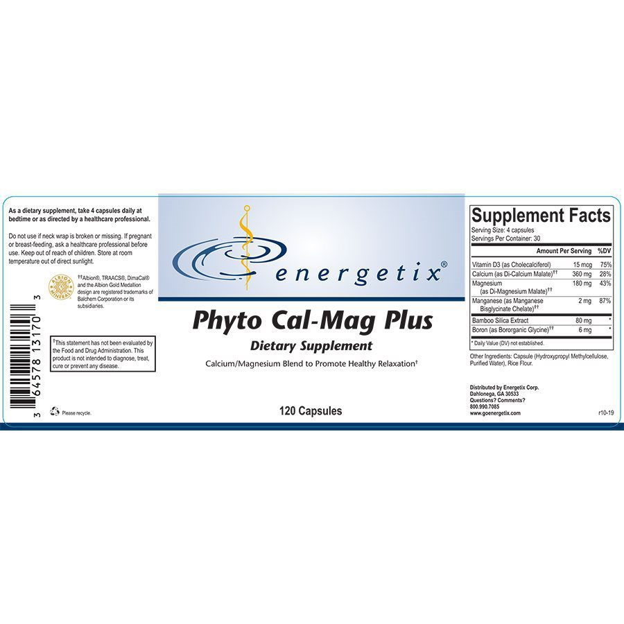 Phyto Cal Mag Plus is a dietary supplement designed to support healthy bone density, muscle function, and overall vitality. Each bottle contains 120 easy-to-swallow capsules formulated with a balanced blend of calcium, magnesium, and strategically chosen plant-based nutrients to promote optimal skeletal health and daily wellness.