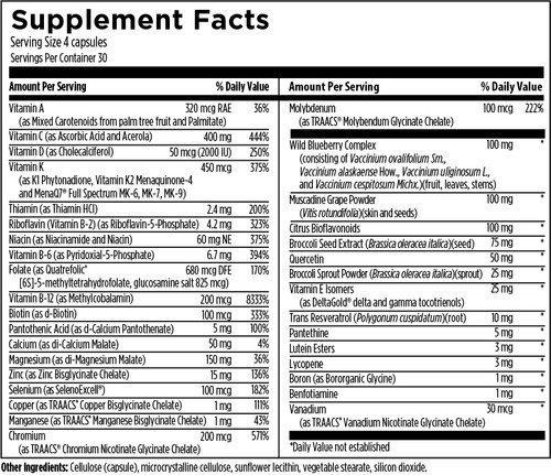 Primal Multi is a first-of-its-kind multivitamin, mineral and phytonutrient blend specifically formulated to mimic the nutrient intakes found in an optimal evolutionary human diet. The levels of nutrients provided by Primal Multi were devised based on the concept of evolutionary adaptation of human physiology and correspond to a whole food, nutrient-dense diet. The ingredients in Primal Multi have been sourced to be naturally occurring or bioidentical. In addition to key vitamins and minerals, this formula includes select phytonutrients proven to have beneficial effects for health (such as lutein, lycopene, resveratrol, wild blueberry, broccoli seed/sprout, citrus bioflavonoids and more), which were likely consumed in greater quantities in the evolutionary past than they are in the modern diet.