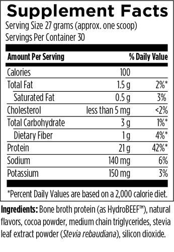 PurePaleo™ is a novel, great-tasting, dairy-free protein powder, yielding 21 g of protein per serving. It contains HydroBEEF™, a highly concentrated, bone broth protein isolate, produced through an exclusive proprietary process that allows the protein to be hydrolyzed into more peptides, resulting in easier absorption and assimilation. This product contains beef from animals raised in Sweden without hormones or antibiotics, and is free of any GMO grains, grasses, and/or ensilage.
