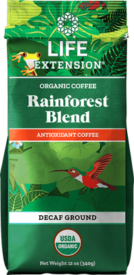 Life Extension’s Rainforest Blend consists of 100% USDA certified organic ground Arabica coffee beans, prepared in small batches and packaged whole for your convenience.