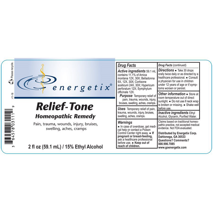 Relief-Tone is a broad-use homeopathic combination formula for pain. It covers the symptoms associated with the effects of trauma such as wounds, bruises, sprains, fractures, and other injuries. It is also useful for pain arising from dental work, surgical procedures, headaches, muscle aches, swelling, and muscle cramps.