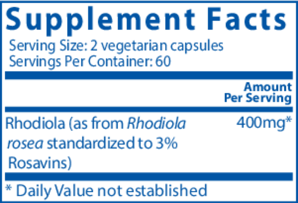 • Supports the adrenal glands* • Promotes healthy energy levels* • May help relieve occasional stress* • Premium Vegan Formulation Rhodiola Rosea is an arctic plant utilized for its powerful adaptogenic properties.* Supportive to the adrenal glands, Rhodiola encourages mental and physical performance, stamina, and energy production.* Rhodiola may relieve occasional stress, as well as mild memory problems associated with aging.* It comes in easy to digest vegetarian capsules. Packaging and labels may vary.