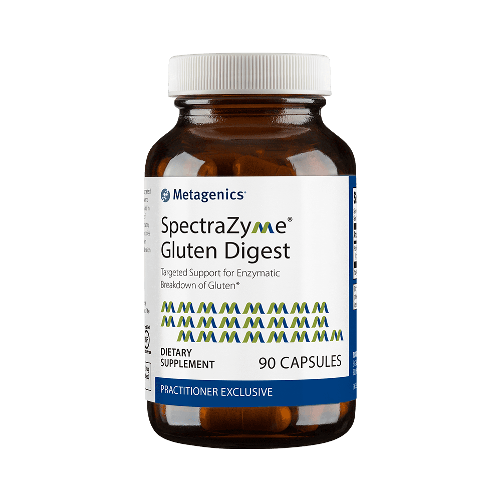 G, is a targeted protease enzyme supplement that has been clinically shown to help digest gluten in humans as well as in gastrointestinal and in vitro models. This formula helps promote the breakdown of gluten proteins in the stomach which may help support healthy digestion of wheat, barley, rye, and other sources. Human studies also indicate that Spectrazyme may help break down gluten proteins before they reach the small intestine, a key consideration in healthy digestion.