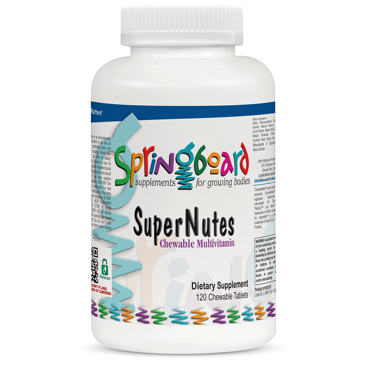 SuperNutes is a chewable children’s multivitamin and mineral supplement that provides essential vitamins and minerals needed to support a growing child’s development. As a complete multivitamin, SuperNutes includes high-quality nutrients to support a healthy micronutrient reserve. The great-tasting, natural lemon flavor makes achieving compliance easy.