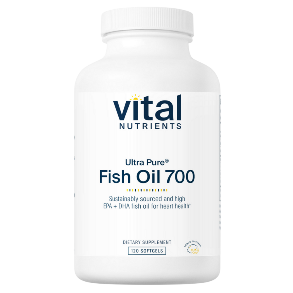 • High concentration of EPA & DHA • Supports soft tissue and connective tissue* • Maintains normal platelet aggregation levels* Ultra Pure® Fish Oil 700 provides support and maintenance of the normal function, fluidity and health of cell membranes.* Fish Oil contains the essential fats EPA and DHA.* These fats help maintain and support soft tissue and connective tissue.* Fish oil helps promote cartilage and joint function and relieves mild mood changes and cramps associated with the menstrual cycle.* Fish oil helps maintain platelet aggregation levels that are already in the normal range.*