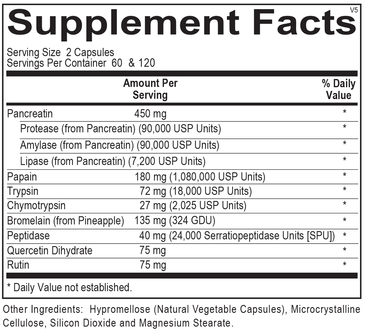 Vascuzyme, a comprehensive multi-enzyme formula, helps support normal blood circulation and vessel function, and maintains normal inflammatory balance. It also promotes recovery from exercise and physical stress by supporting the breakdown of unwanted proteins, aiding the body’s natural repair processes. For a normal recovery process, Vascuzyme has applications for a broad range of health needs. Vascuzyme’s enzyme blend includes, protease, amylase, papain, trypsin, lipase, chymotrypsin, bromelain and peptidase enzymes, along with quercetin and rutin, two well-known flavonoids.