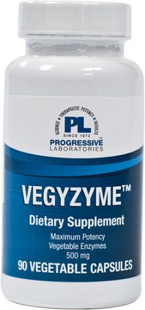 Because vegetable enzymes are active in a wider pH range than animal enzymes, Vegyzyme works both in the mild acid environment of the upper stomach and in the alkaline environment of the intestines. Vegyzyme is a safe, natural digestive aid for all enzymatic digestive disturbances and is appropriate for either short or long term use.
