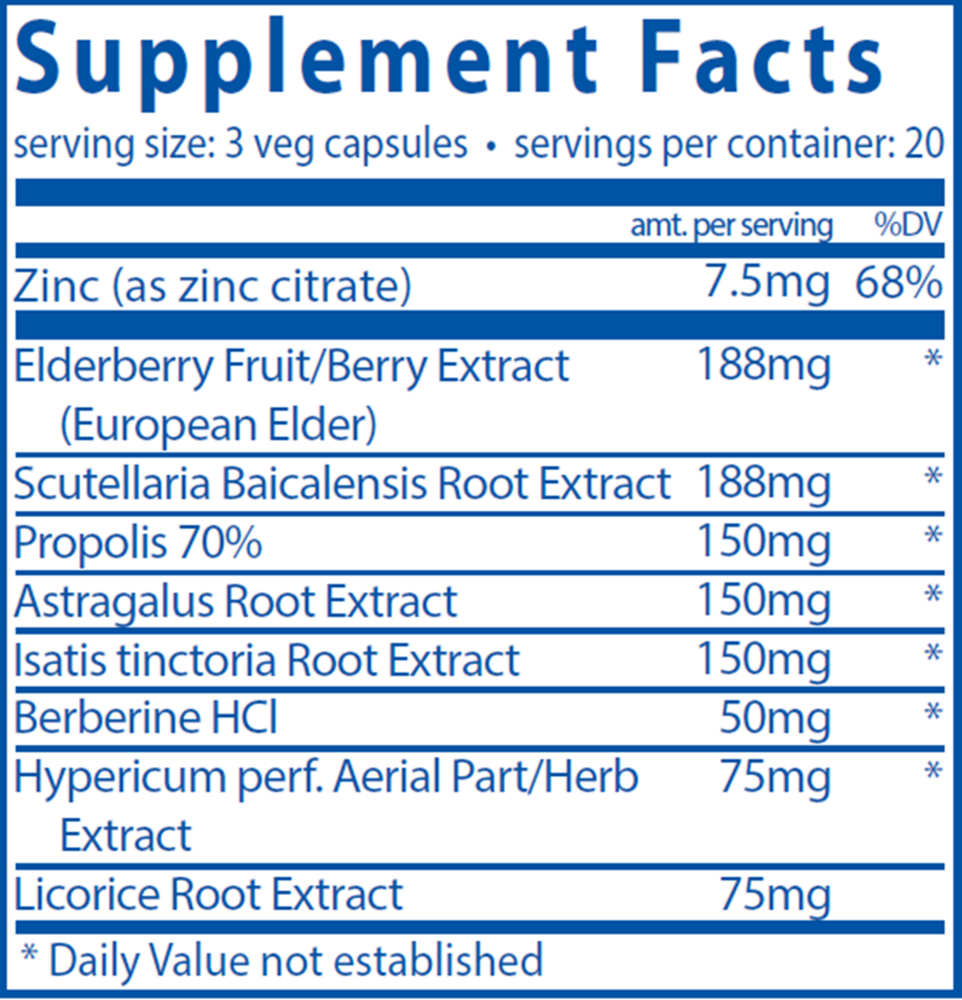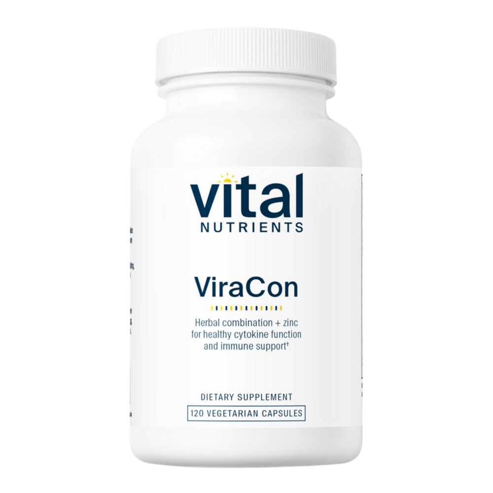 • Supports the immune system* • Promotes cytokine production* • Maintains normal respiratory function* ViraCon is a powerful combination of immune supporting herbal extracts featuring Elderberry, a rich source of antioxidant flavonoids.* Viracon’s unique blend of botanical extracts, Berberine and 7.5mg of Zinc per serving work synergistically to support the body’s natural defenses, by helping cytokine production and other important immune factors.* This gentle vegetarian formula also helps promote normal respiratory function and energy, and is a must for everyone’s home during times of seasonal challenges.*