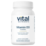 • Supports healthy serum calcium levels* • Promotes calcium absorption* • Supports colon health* Vitamin D3 is a fat-soluble vitamin that helps maintain strong bones and teeth by supporting healthy serum calcium levels.* It does this by promoting absorption of calcium in the digestive tract, as well as reducing calcium loss through urine.* Additionally, Vitamin D supports colon health, and may promote a healthy immune system.* Vitamin D occurs naturally in very few foods, and although it can be produced in the body, obtaining adequate skin absorption from sun exposure can be difficult year round.* Vital Nutrients offers supplemental Vitamin D in the active form D3 (also known as cholecalciferol).* Packaging and labels may vary.