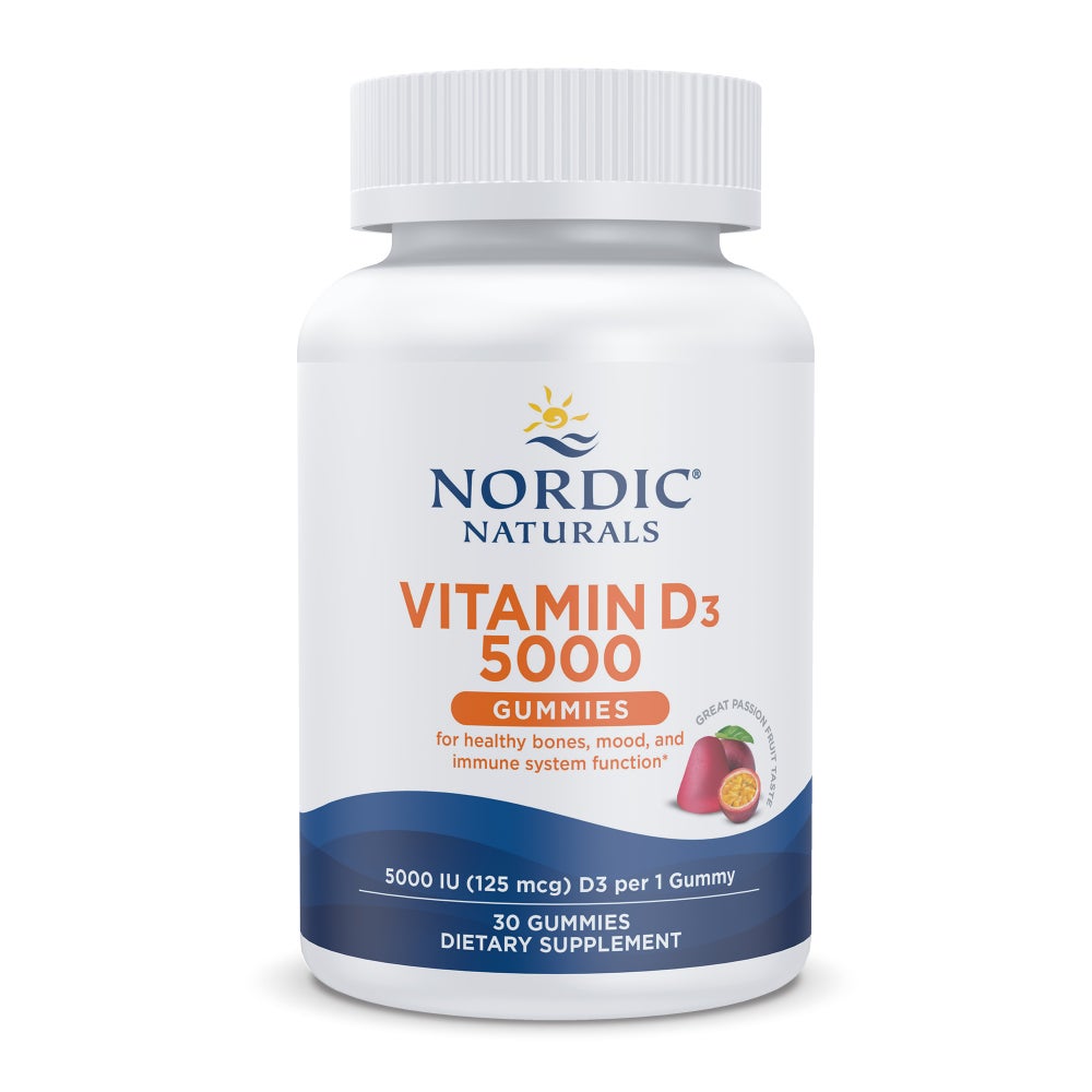 Nordic Naturals Vitamin D3 5000 Gummies are delicious, easy-to-take gummies designed to help support your daily vitamin D needs. Each serving provides Vitamin D3 (cholecalciferol), an essential nutrient that plays an important role in supporting overall health, including maintaining healthy bones and supporting immune function.* These gummies are made for everyday convenience—no measuring, no pills, just a great-tasting option for your routine.